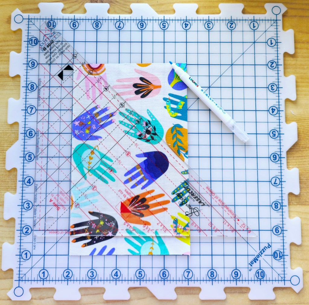 Using a quilting ruler and a water-erasable marker, I placed the quilting lines 1 inch apart.