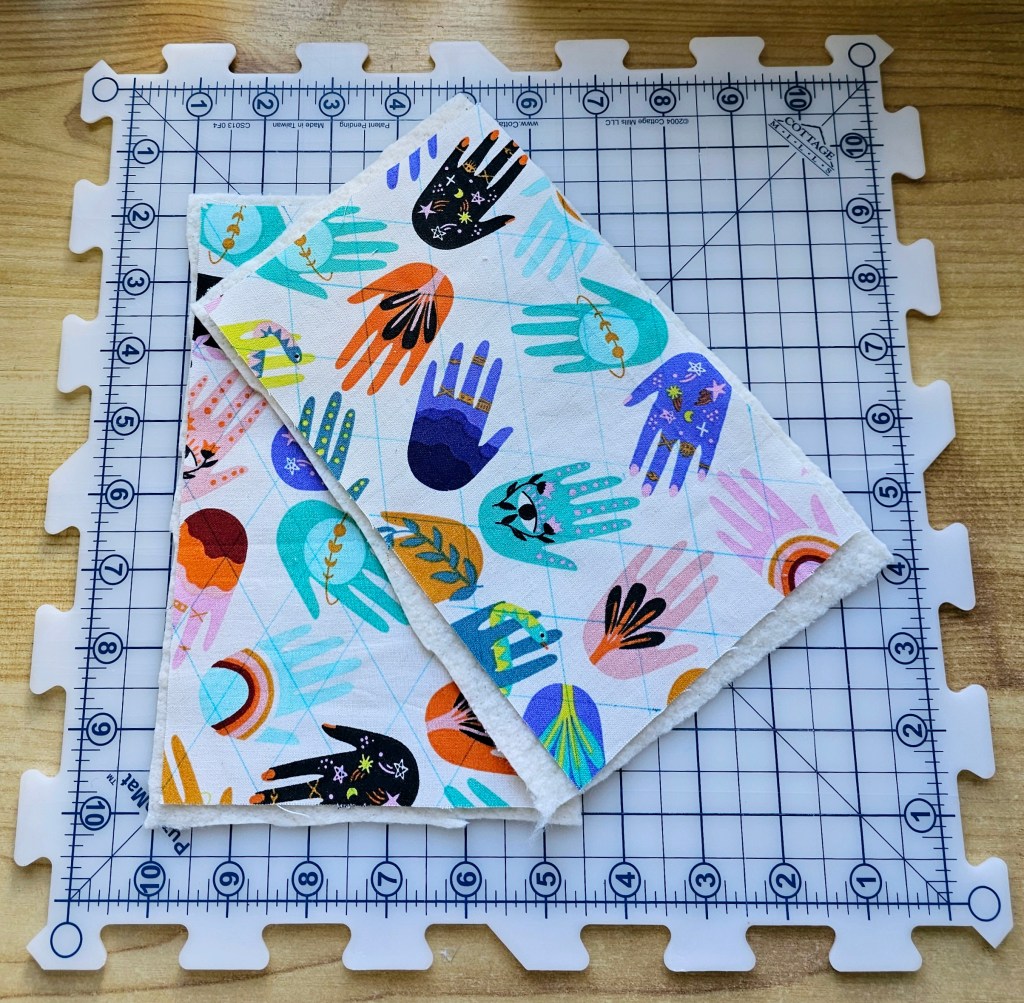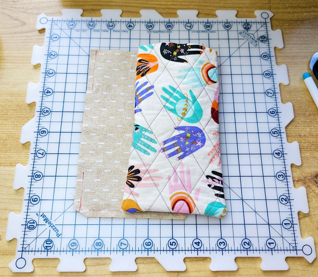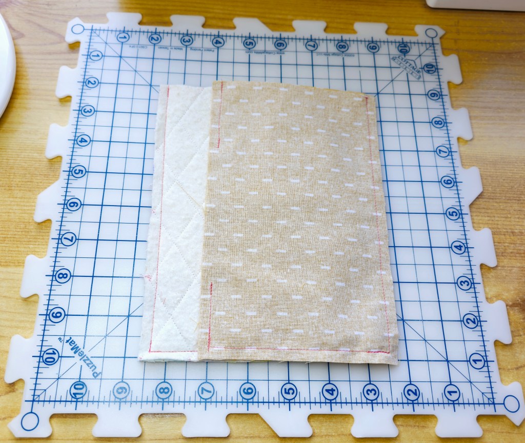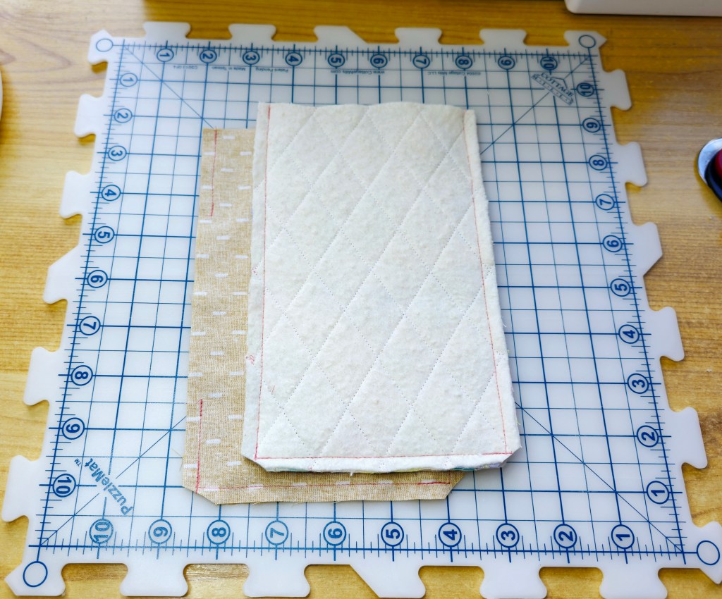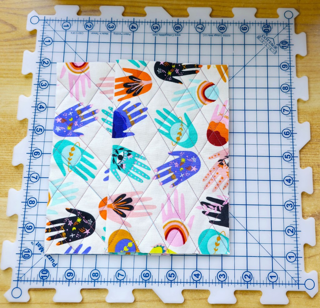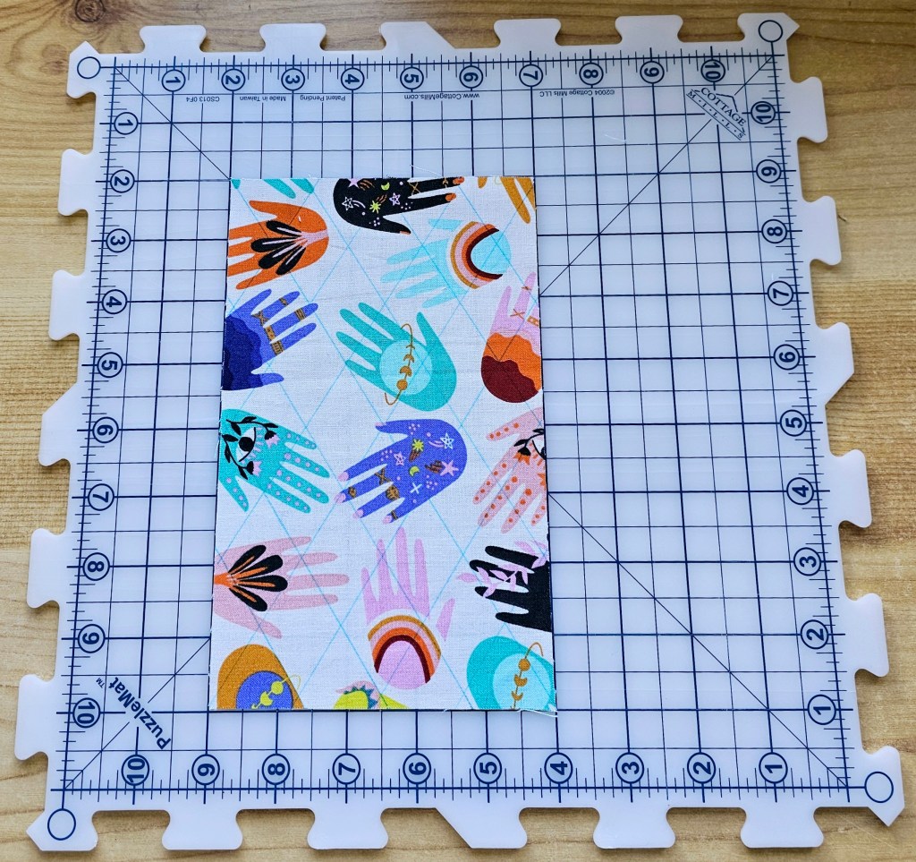 - These panels are cut slighter bigger for the quilting process, but will later betrimmed down to 8” x 5”. This just ensures our panels are nice and neat.