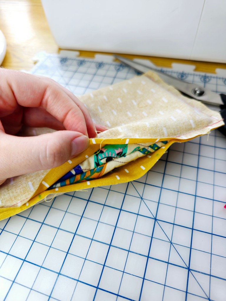 Turn the exterior panels right side out, then use a pencil or turning tool to push the corners out.