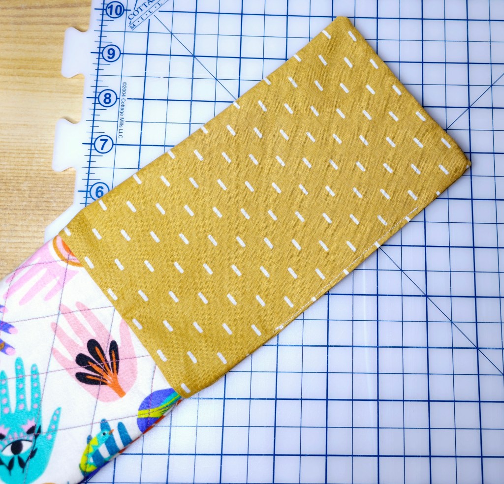 Trim panels back to 8” x 5” using your rotary cutter or scissors.