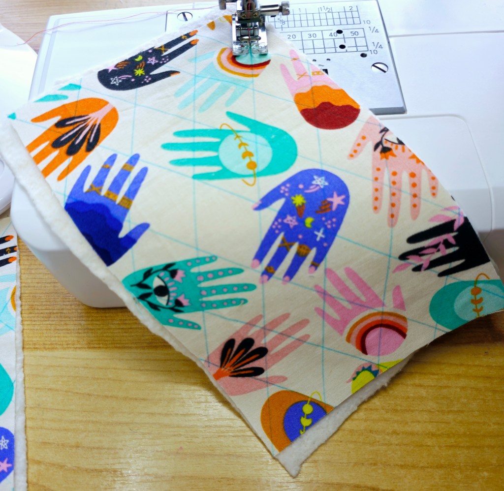 Repeat the previous step for your interior panels, but this time leave a 2.5” inch opening on one side. This will allow us to turn out our fabric later.