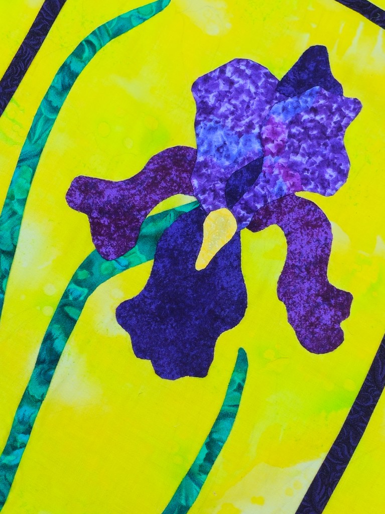 Quilting an appliqué iris is like stitching a little piece of spring into fabric. Each petal, cut with care, feels like a whispered memory of a garden in bloom—soft, hopeful, and quietly radiant. There’s something deeply personal about appliqué: the way your fingers guide the needle around every curve, creating life from thread and cloth, feels like a conversation between heart and hand.